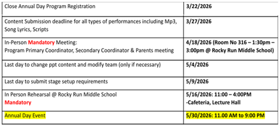 Tamil Theni competition will be held on March 21, 2026 in their respective classrooms and all the kids are eligible to participate in this competition. We made a great effort to simplify the word list for kids, please encourage all our kids to participate in the competition. Word list and guidelines are available in our website. Click Here.